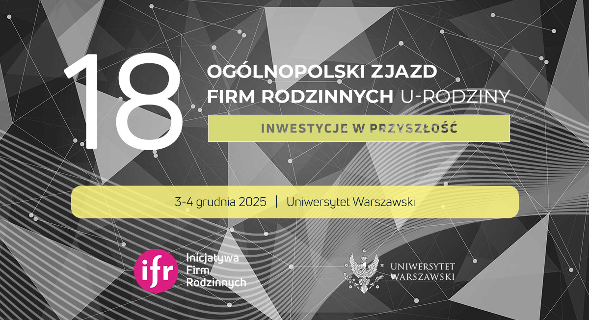 Serdecznie zapraszamy przedsiębiorców rodzinnych, członków naszego stowarzyszenia, ekspertów i entuzjastów biznesu do udziału w 18. Ogólnopolskim Zjeździe Firm Rodzinnych U-RODZINY 2025, który odbędzie się w dniach 3-4 grudnia 2025 roku w Warszawie. Naszym tegorocznym gospodarzem będzie Uniwersytet Warszawski. Partnerem głównym U-RODZIN 2025 jest PKO Bank Polski S.A.